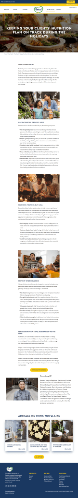 Read her second article here:: https://www.becel.ca/en-ca/heart-health/plant-based/keeping-clients-nutrition-on-track OR refer below for a snapshot of her article. ๐